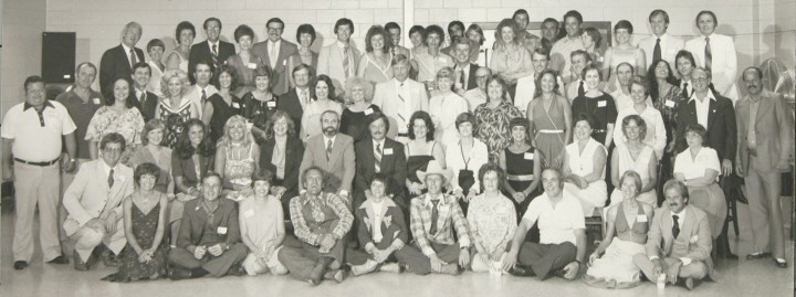 Row Four: Larry Stallings, Barbara Stallings, Forrest Goodell, Nancy Goodell, Sue (Stidham) McSwain, Larry McSwain, Marilynn Blackmon, Jerry Smith, Regina Smith, John Turner, Glenda Turner, Carolyn (McIntosh) Berry, Dan Berry, Carlos Flores, Nancy (Domjanovich) Flores, Louise Tyree, Jerry Nelson, Phillip Smith, Beth (McCord) Hill, Beth's husband, Mary Ellen (Alletag) Davenport, Richard Davenport, Dan Evans