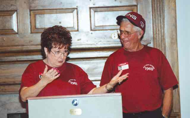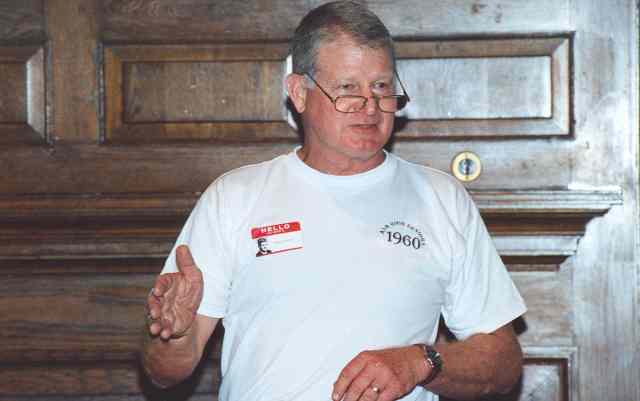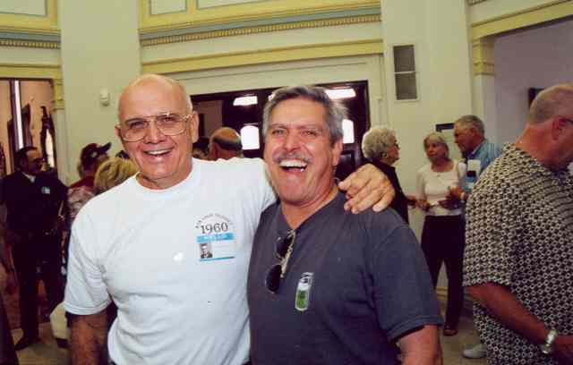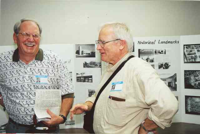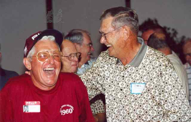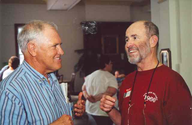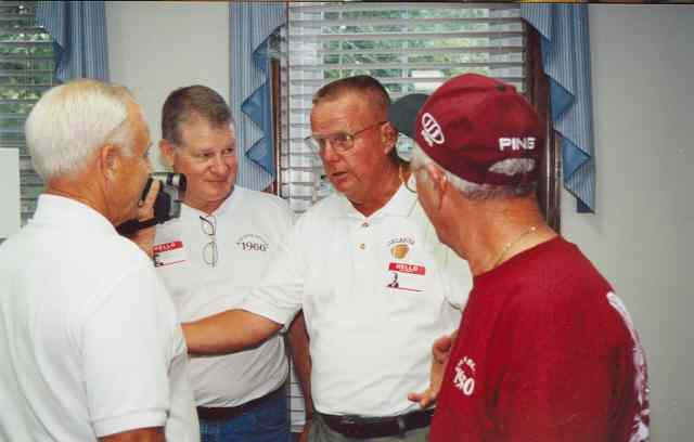 Charlie, George and Dell talk with Coach Thomason, whom most of us had not seen since Jr. High School.