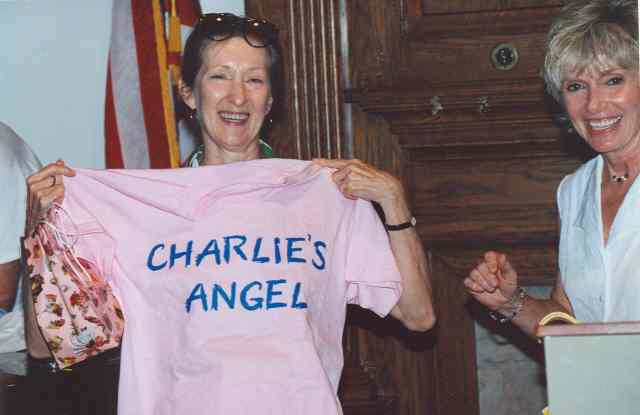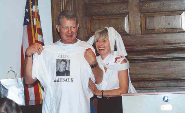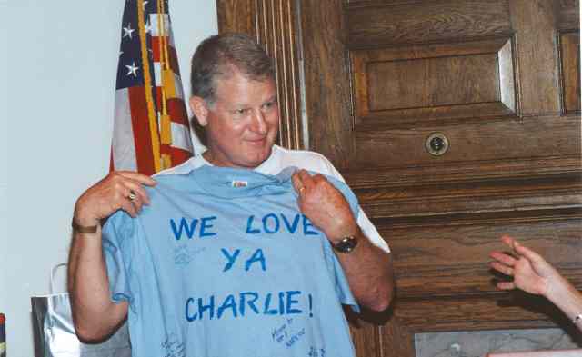 Charlie gets first T-shirt from everyone for being such a great Class President, presented by Janet.