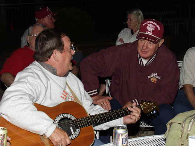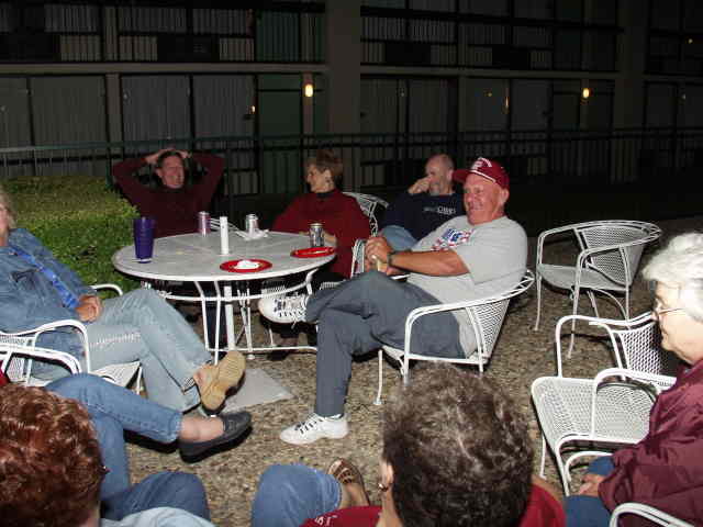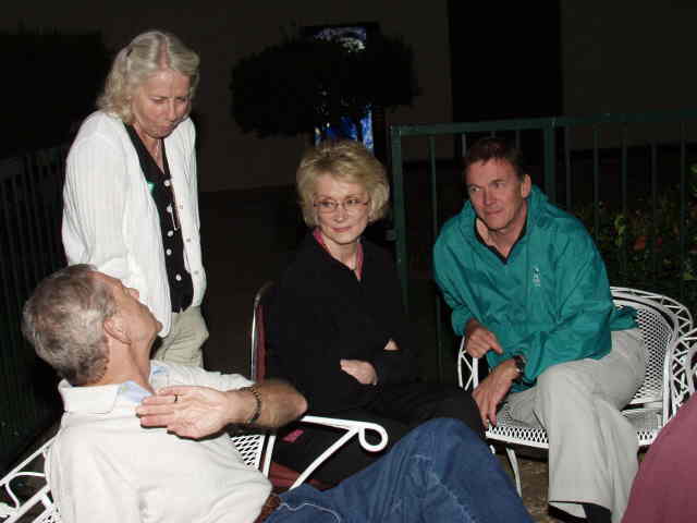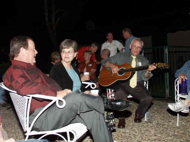 John talks with Ann while Joe entertains. Background: Sue, Brenda, Ted, Jerry, Darrell, and Charlie(?)