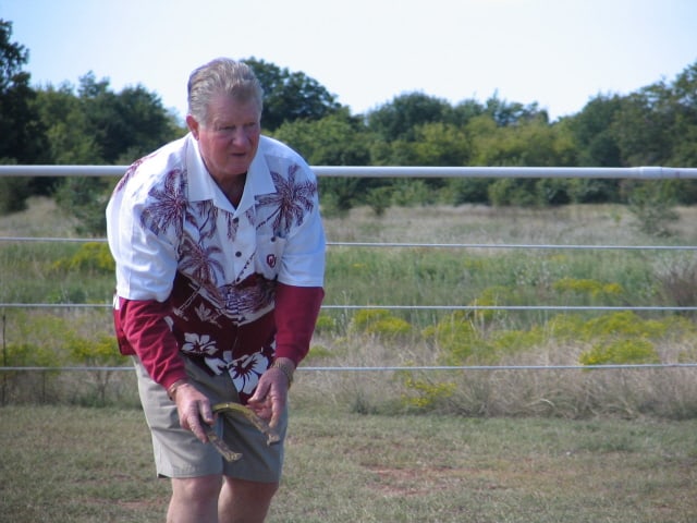 Charlie pitching horseshoes at Fossil Creek Ranch.