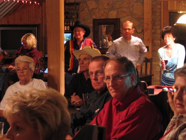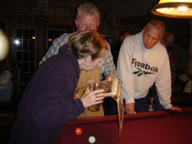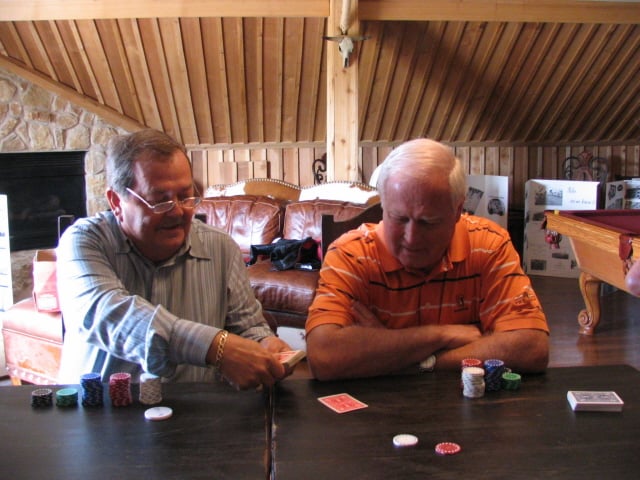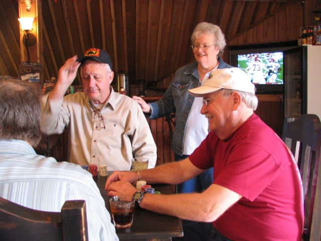 More Poker action, John Blassingame seems disgusted with his hand as Carole Jo looks on and John Kuras grins at some comment.